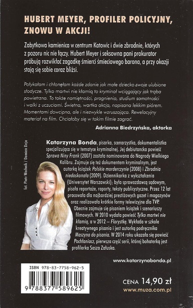 Na tę książkę czekają wszyscy fani Katarzyny Bondy! Najpopularniejsza polska autorka powieści kryminalnych, po niemal 10 latach przerwy, prezentuje kolejną część uwielbianej przez czytelników (i wyczekiwanej!) serii z psychologiem śledczym – Hubertem Meyerem. Nie spełniły jego fantazji. Zapłaciły krwią. To będzie najtrudniejsze śledztwo w całej karierze Meyera. Tylko on, telewizor i bateria tequili. Tak Hubert Meyer postanawia spędzić swój trzynastodniowy urlop. Ten plan się jednak nie powiedzie. Nieznajoma kobieta zaczyna nękać go dziwnymi esemesami, a wkrótce potem niezapowiedzianą wizytę składają mu zaprzyjaźnieni policjanci razem z prokurator Weroniką Rudy. Pół roku wcześniej jeden z funkcjonariuszy zastrzelił Japę, niebezpiecznego gangstera. Żeby ocalić policjanta przed grożącą mu karą, Meyer ma sporządzić ekspertyzę która, skieruje śledztwo na lewe tory. Śmierć Japy zostałaby wtedy uznana za gangsterskie porachunki. Potrzebna jest jednak „przykrywka”, zastępcza sprawa, nad którą śledczy będą oficjalnie pracować. Wybór pada na morderstwo w Mosznej, gdzie na drodze prowadzącej do zamku porzucono zmasakrowane ciało młodego chłopaka. Kiedy Meyer i Rudy próbują odkryć tożsamość sprawcy, ten dokonuje kolejnych zbrodni. Śledczy przesłuchują kolejnych świadków. Trop wciąż się urywa. Za murami starego zamku aż buzuje od konfliktów. To będzie najtrudniejsze i najbardziej ryzykowne śledztwo w całej karierze Meyera.
